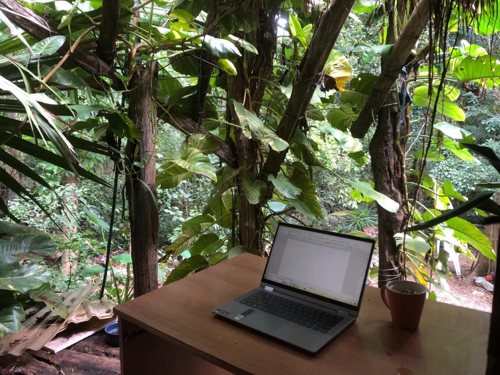 As with everything, it is a decision to step out of this race; to leave the story, idea and habit behind; Today, I decide to tell myself another story; and make a commitment to doing things differenly; to act and live from a different state – a state of abundance and fulfillment. The reality I decide to live in is that I have everything I need at this very moment and anything I may need in the future will be there when I need it. In this present moment, I live in a magical jungle where I can live the way I want to live – in connection with the jungle, with myself and my nature, exploring my inner landscapes, enjoying my process and sharing about it; and I have a beautiful space where I can Be, create, and share myself and my talents; where I can invite people into my oasis, the sacred, conscious and safe space that I create, firstly for myself.